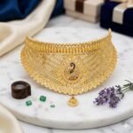 “Embrace the glow of pure craftsmanship. Whether it’s your wedding day or a grand reception, our 18K/20K gold choker captures the essence of contemporary beauty. Lightweight enough for all-day wear, yet bold enough to be an heirloom, it is the ultimate finishing touch for the modern bride.”